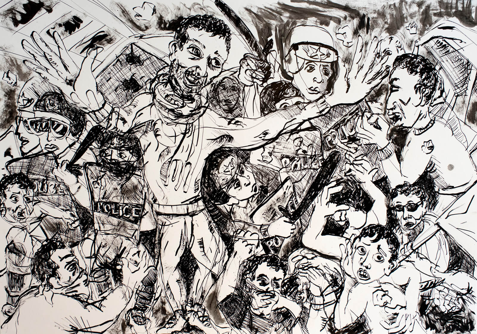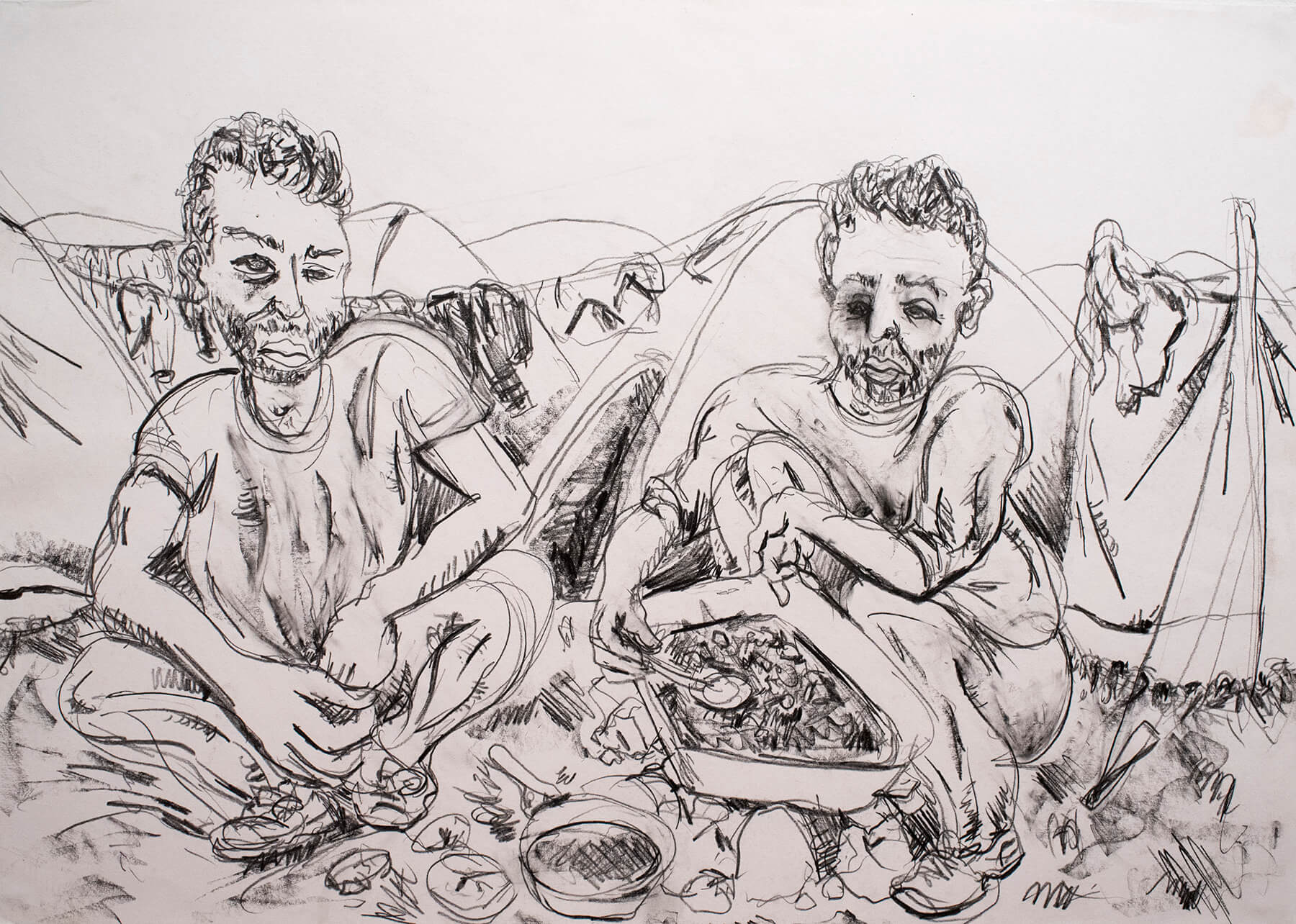In 2016 Hinton followed the route taken by hundreds of thousands of refugees fleeing war in the Middle East, in what became the largest refugee crisis since WWII. With a camera and sketchbook in hand, he followed the refugee trail from Istanbul to Chios, Lesbos, Athens and Idomeni, documenting the individual stories behind news headlines.