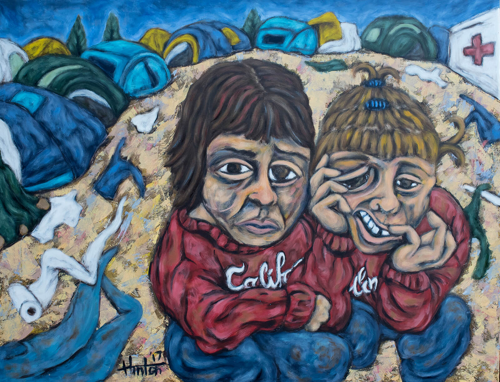 On the Refugee Trail to Europe brings together Hinton’s documentary photographs, sketches and oil paintings to explore conditions of life within Greece’s refugee camps. The work responds to a racially charged debate on immigration and rising anti-Islamic sentiments, giving light to perspectives of ordinary people who have become displaced as a result of war and terror. Hinton's incongruous images of idyllic Greek islands dotted with displaced people reframes the current political debate, humanising the thousands of displaced Syrians, Iraqis and Afghans who have undertaken the journey into Europe.